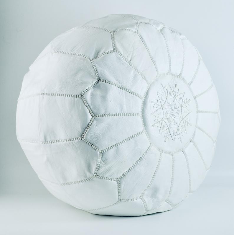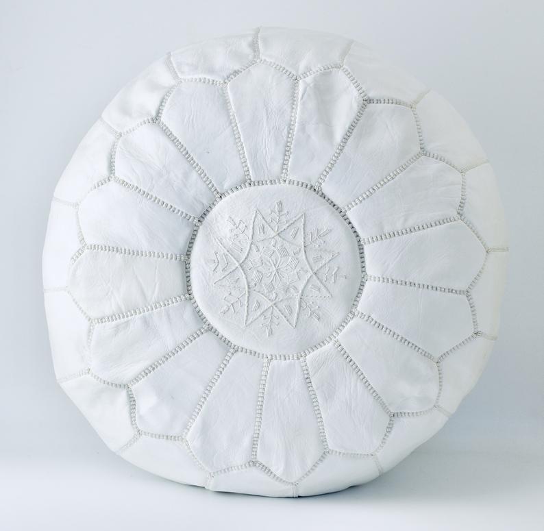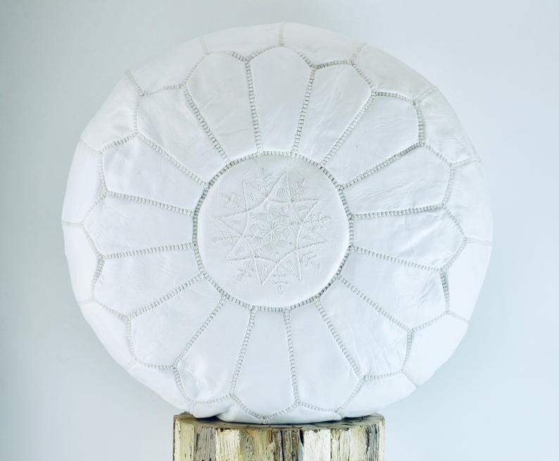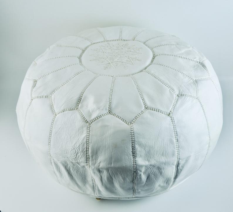 Handmade Product ! 100% ORGANIC WHITE LEATHER POUFFE