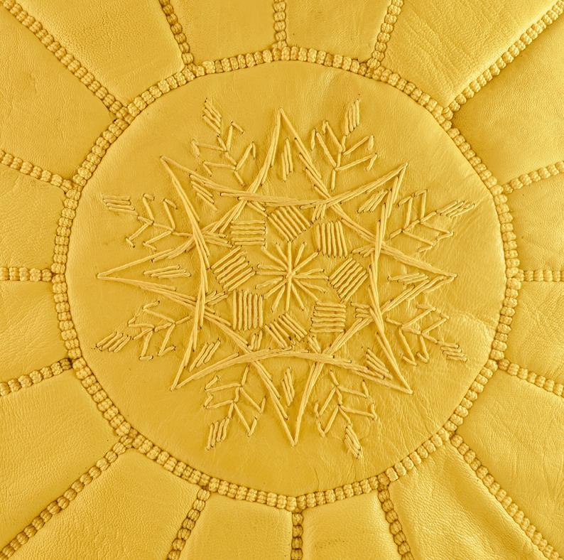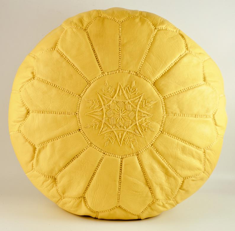 Moroccan Leather Pouffe, Yellow Ottoman
