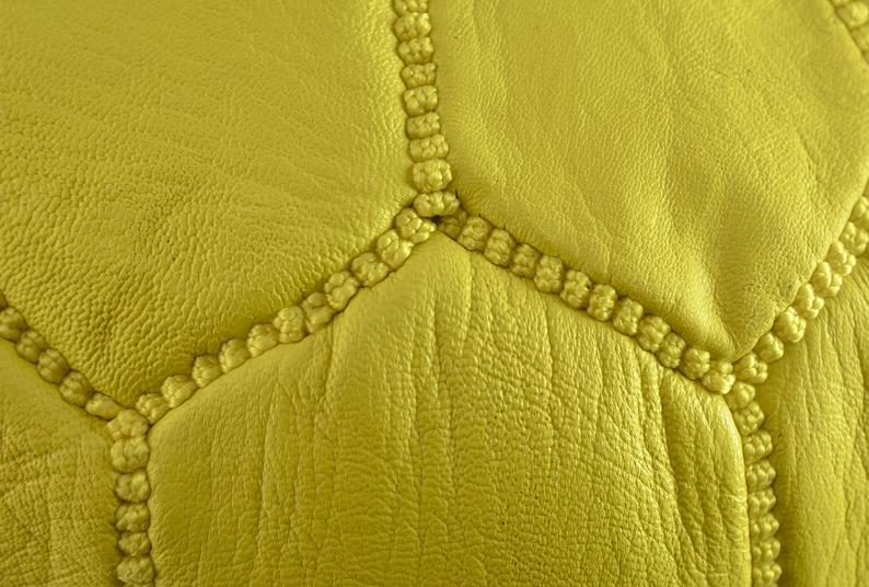 Handmade Product ! 100% ORGANIC YELLOW LEATHER POUFFE